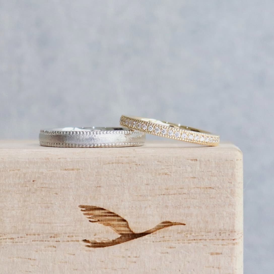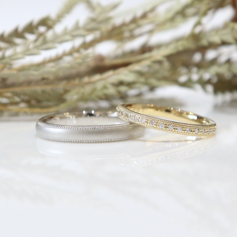 #18MA-003c #18MA-005b #アニバーサリーリング #イエローゴールド #ストレート #ダイヤモンド #ハーフエタニティ #プラチナ #マット #ミルグレイン #錆