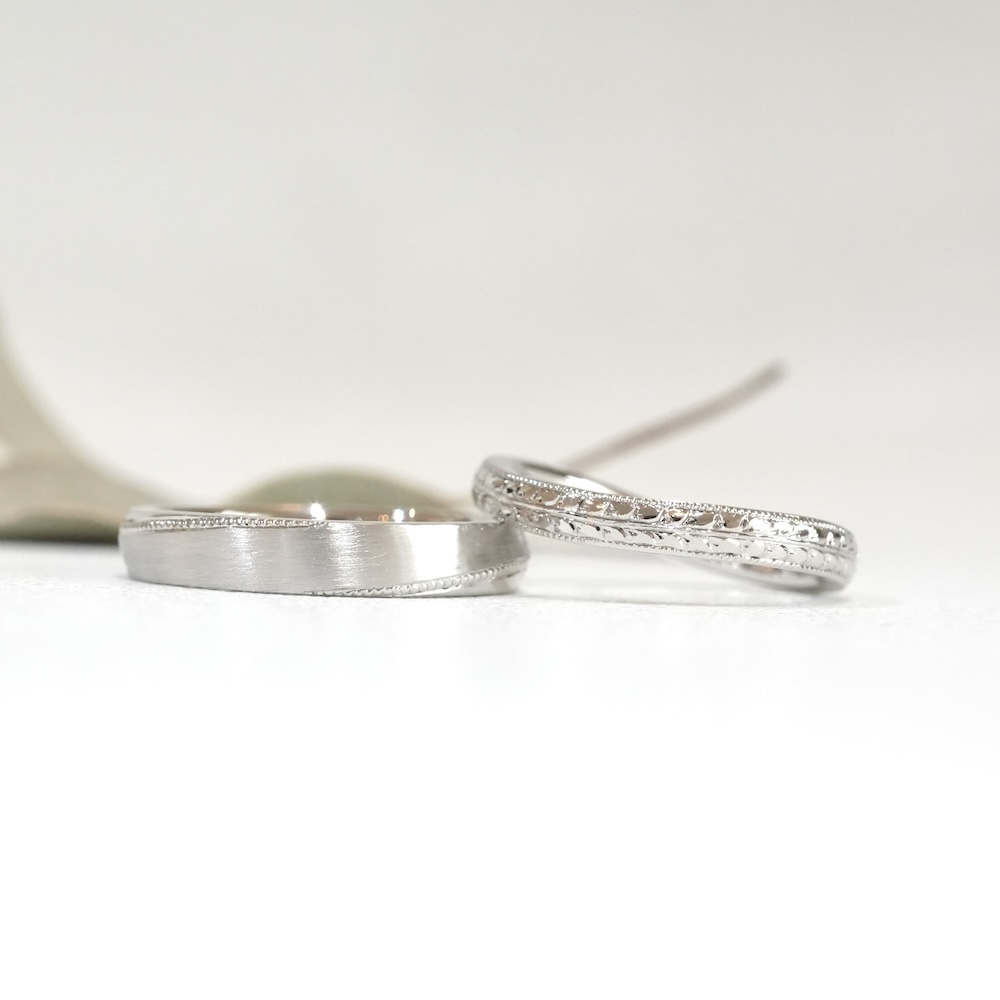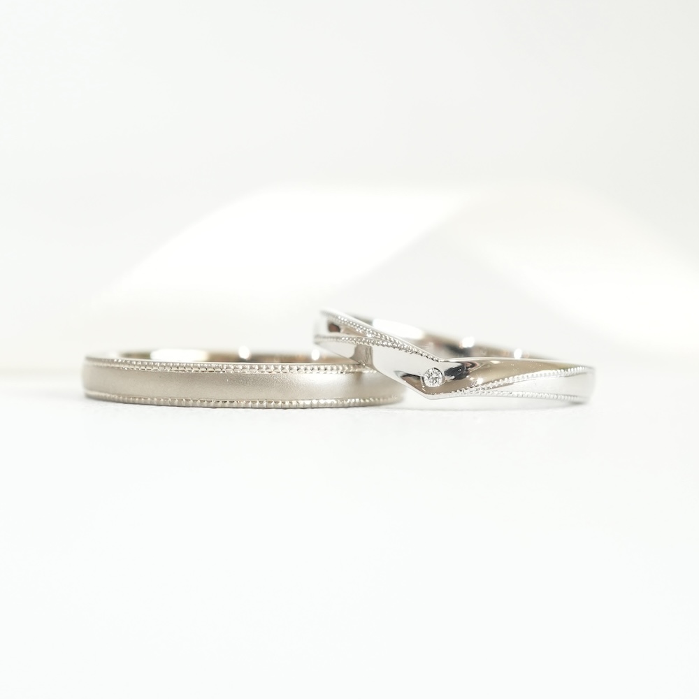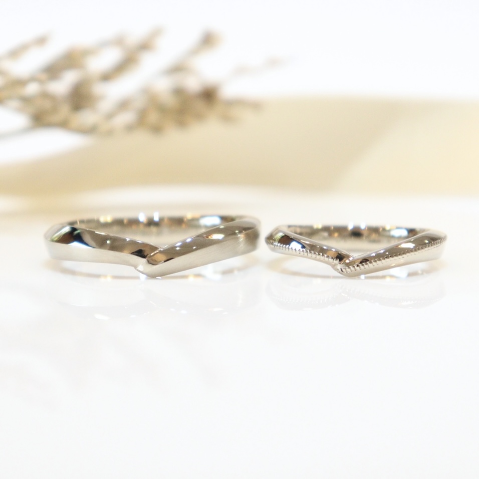 #18MA-021 #V字 #ウェーブ #ヘアライン #ホワイトゴールド #ミルグレイン #結婚指輪 #鏡面