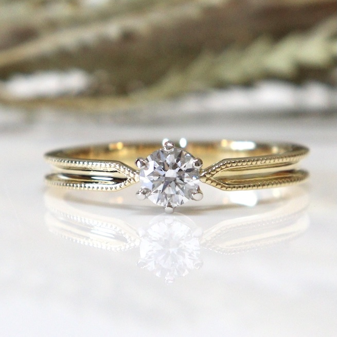 #19TE-024 #20EN-014 #イエローゴールド #ダイヤモンド #ミルグレイン #婚約指輪