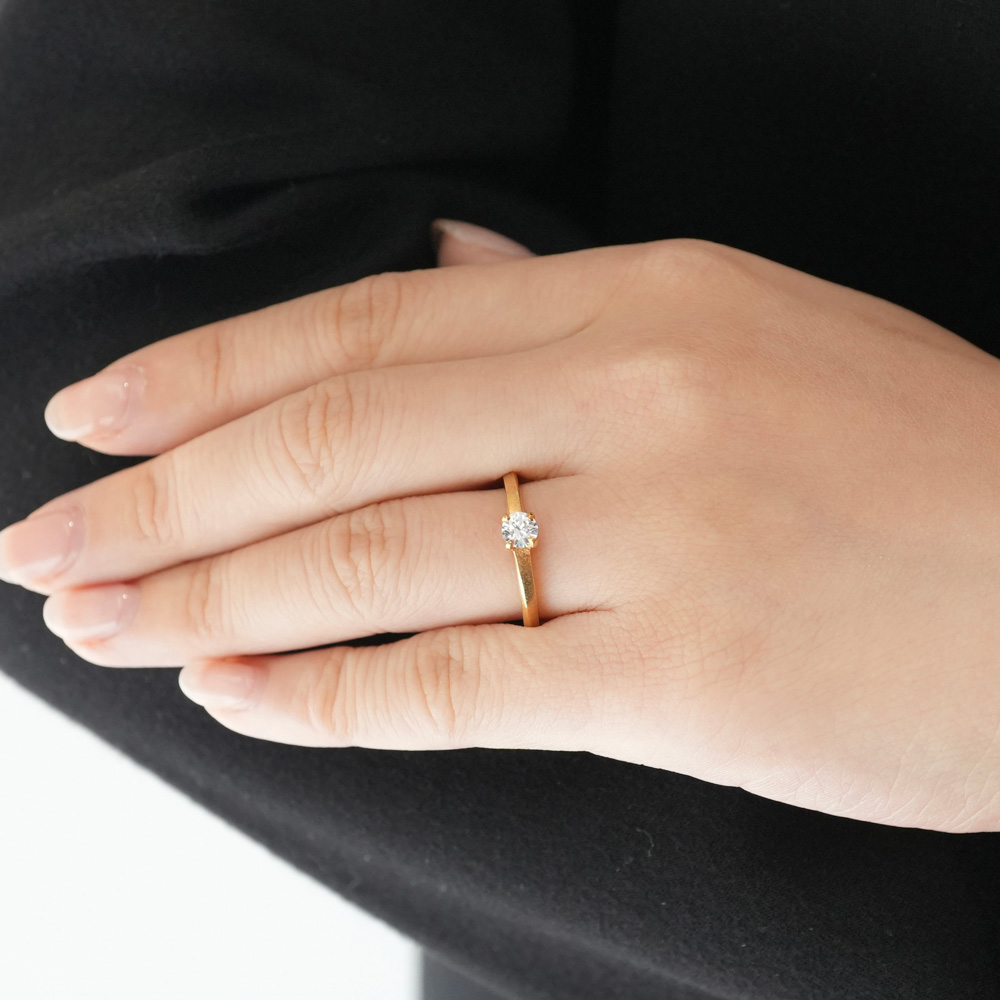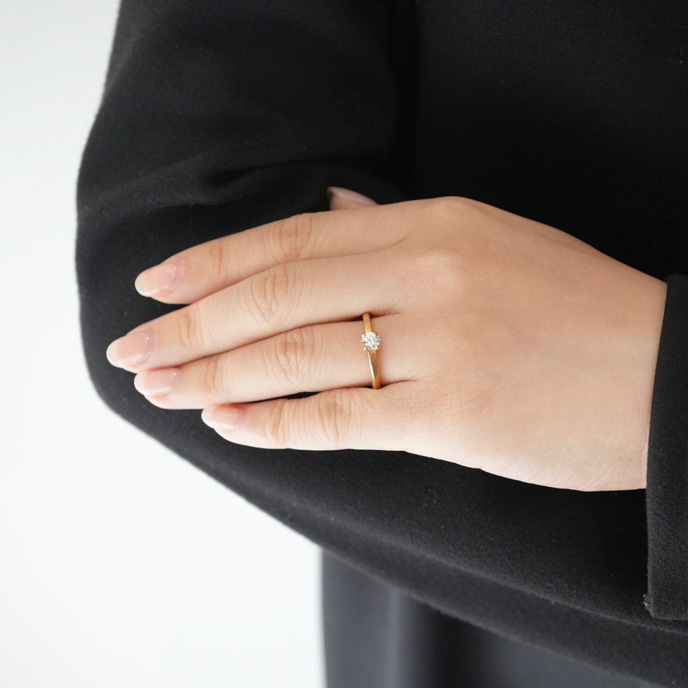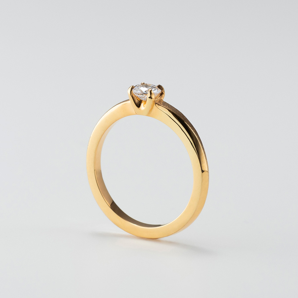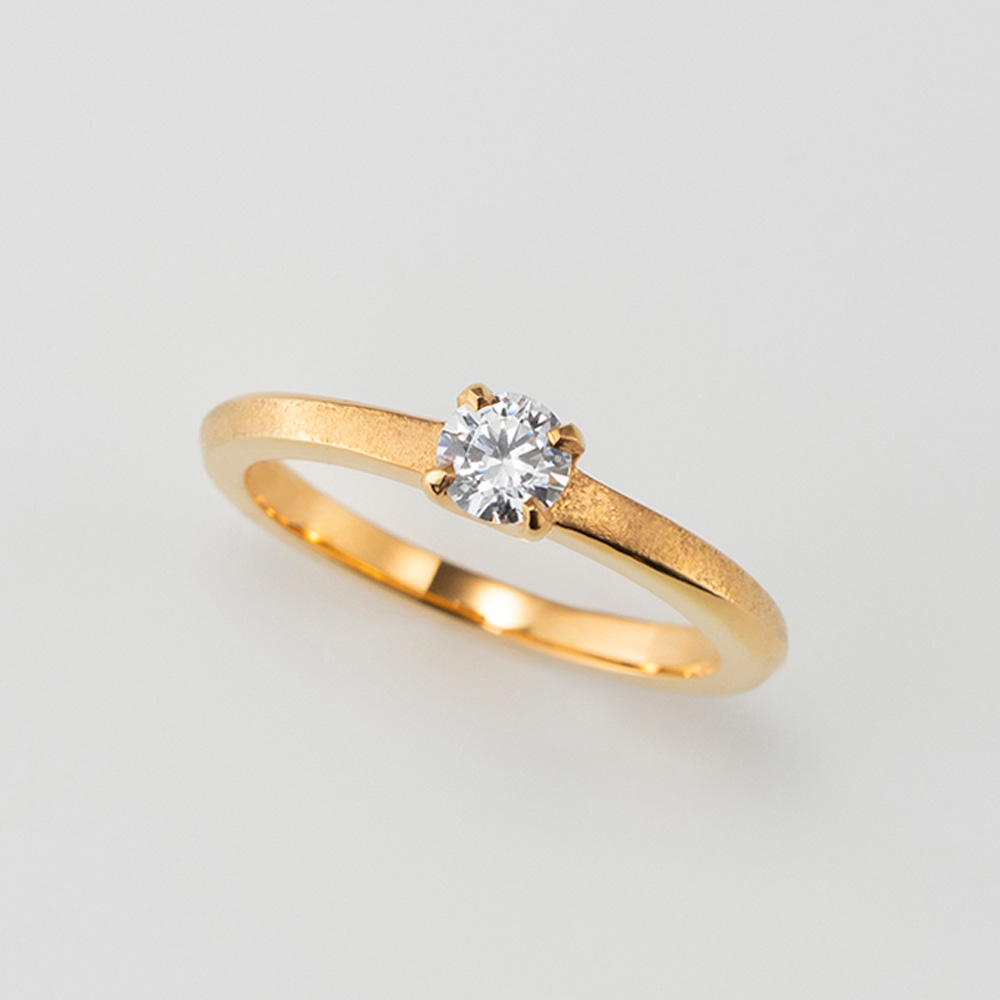 斜めに走る切り返しのラインを境に、異なる質感を楽しめる婚約指輪。 ひとつの指輪に二つの表情を宿す、遊び心のある洗練されたデザインです。 すっきりとしたストレートフォルムが、お手元をより上品に美しく見せてくれます。
