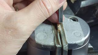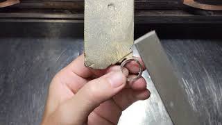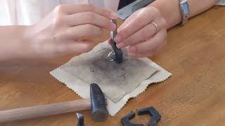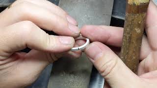 指輪の側面に1つ1つ入れるタガネ鎚目の加工工程。